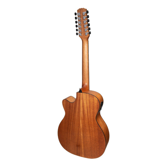 Martinez 'Natural Series' Spruce Top 12-String Acoustic-Electric Small Body Cutaway Guitar (Open Pore)