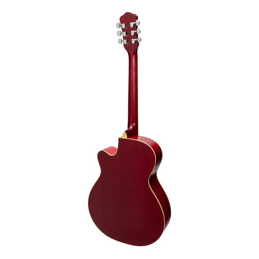 Martinez Jazz Hybrid Acoustic Small Body Cutaway Guitar (Red)