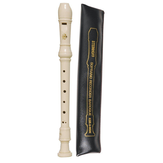 Steinhoff Recorder for Kids with Cleaning Rod and Pouch (White)