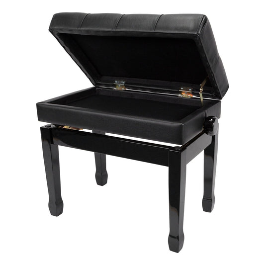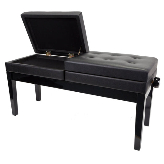 Crown Deluxe Height Adjustable Duet Piano Stool with Storage Compartments (Black)