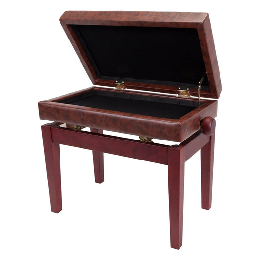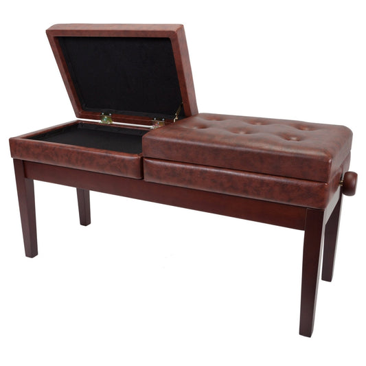 Crown Deluxe Height Adjustable Duet Piano Stool with Storage Compartments (Mahogany)