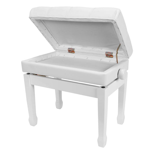 Crown Deluxe Height Adjustable Duet Piano Stool with Storage Compartments (White)