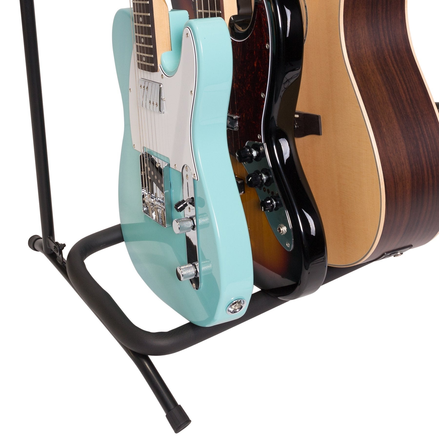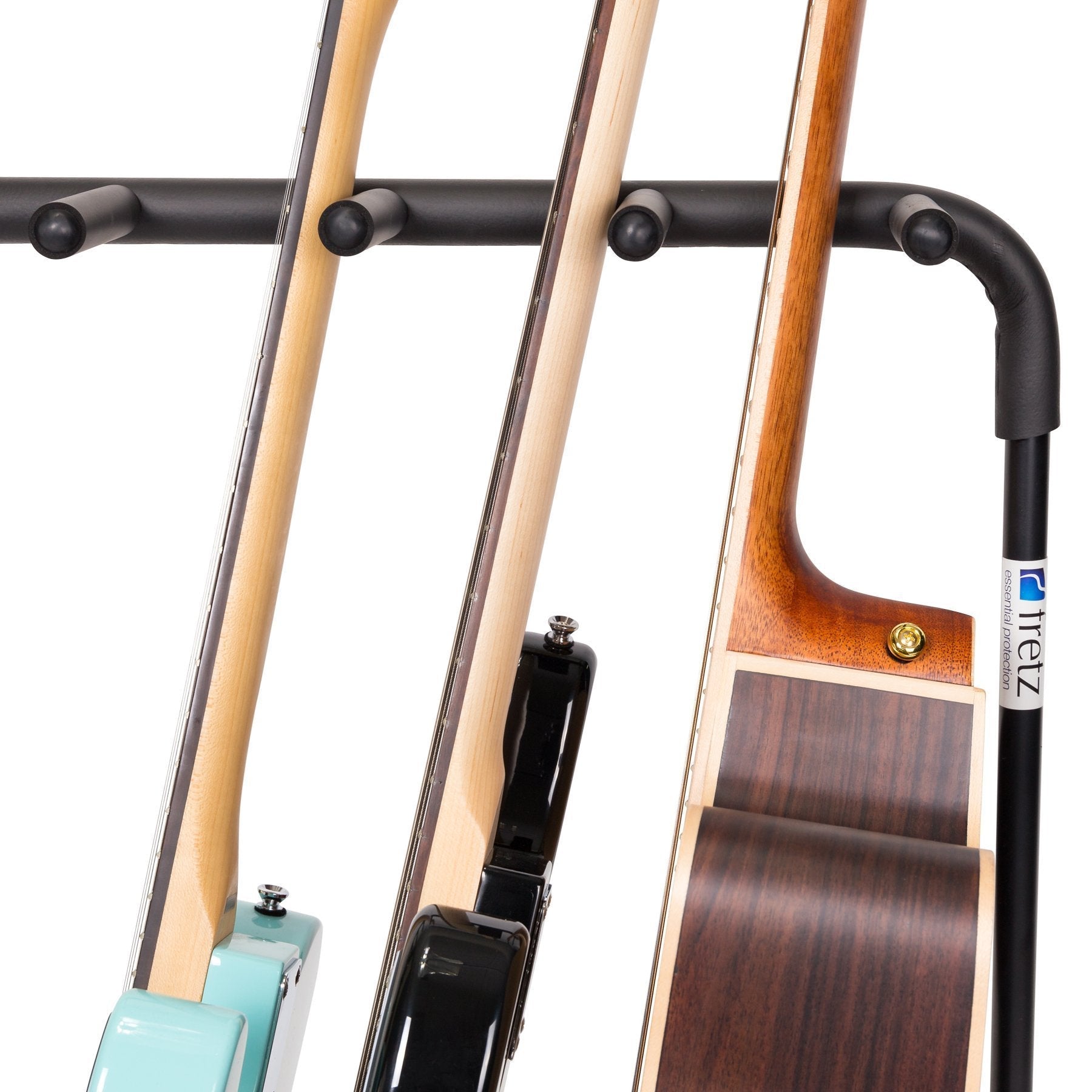 The Fretz multi-rack guitar stand offers an easily transportable multiple guitar stand solution in a foldable, light weight and durable design. Whether it's at home, on stage or in the studio, the Fretz multi-rack keeps your musical invests safe with its heavy duty steel frame and soft rubber foam protective sleeving.