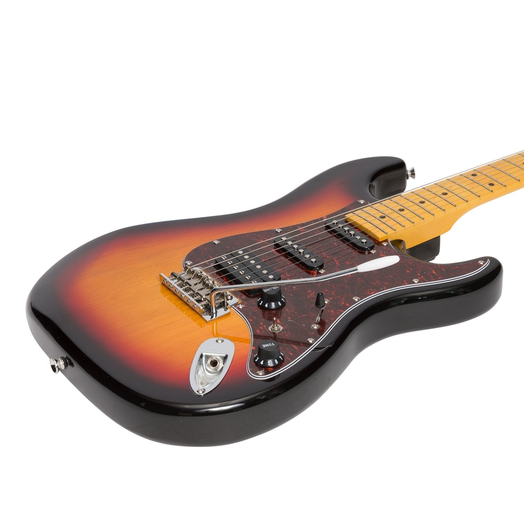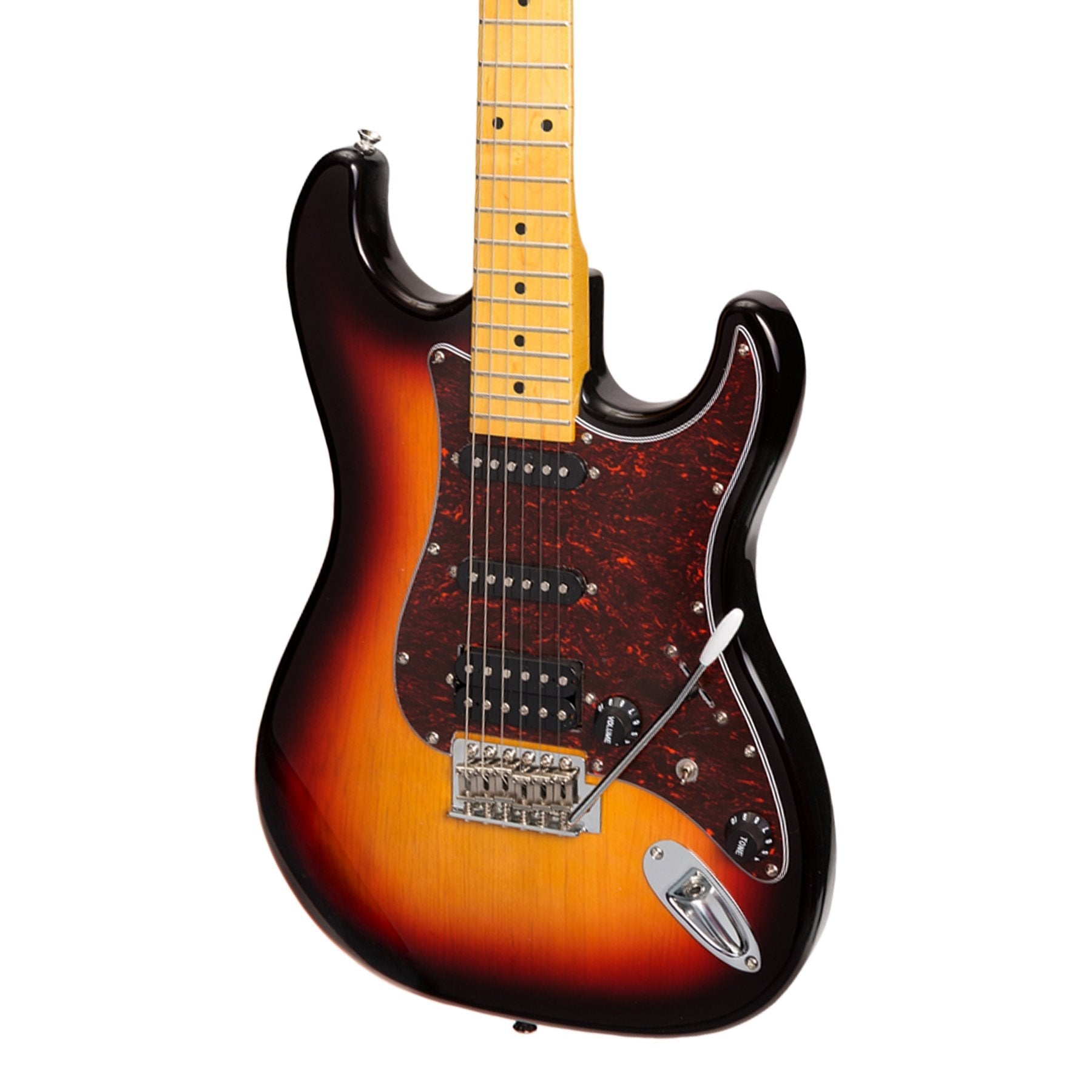 The J&D 'HSS' ST guitar provides authentic vintage tone and playability at an unprecedented price. Each Traditional ST guitar is constructed from historically proven tone woods, features the classic 5-way switch, master volume and two control configuration, as well as a vintage style tremolo bridge and deluxe red tortoise-shell pickguard. Loaded with humbucker/single coil/single coil pickups, J&D have ensured there's no genre of music the Traditional ST can't excel at.